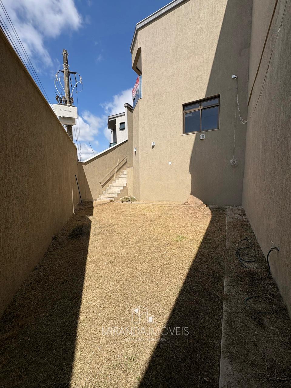 Espaço externo amplo e gramado. Corredor lateral que dá acesso ao espaço externo. br>