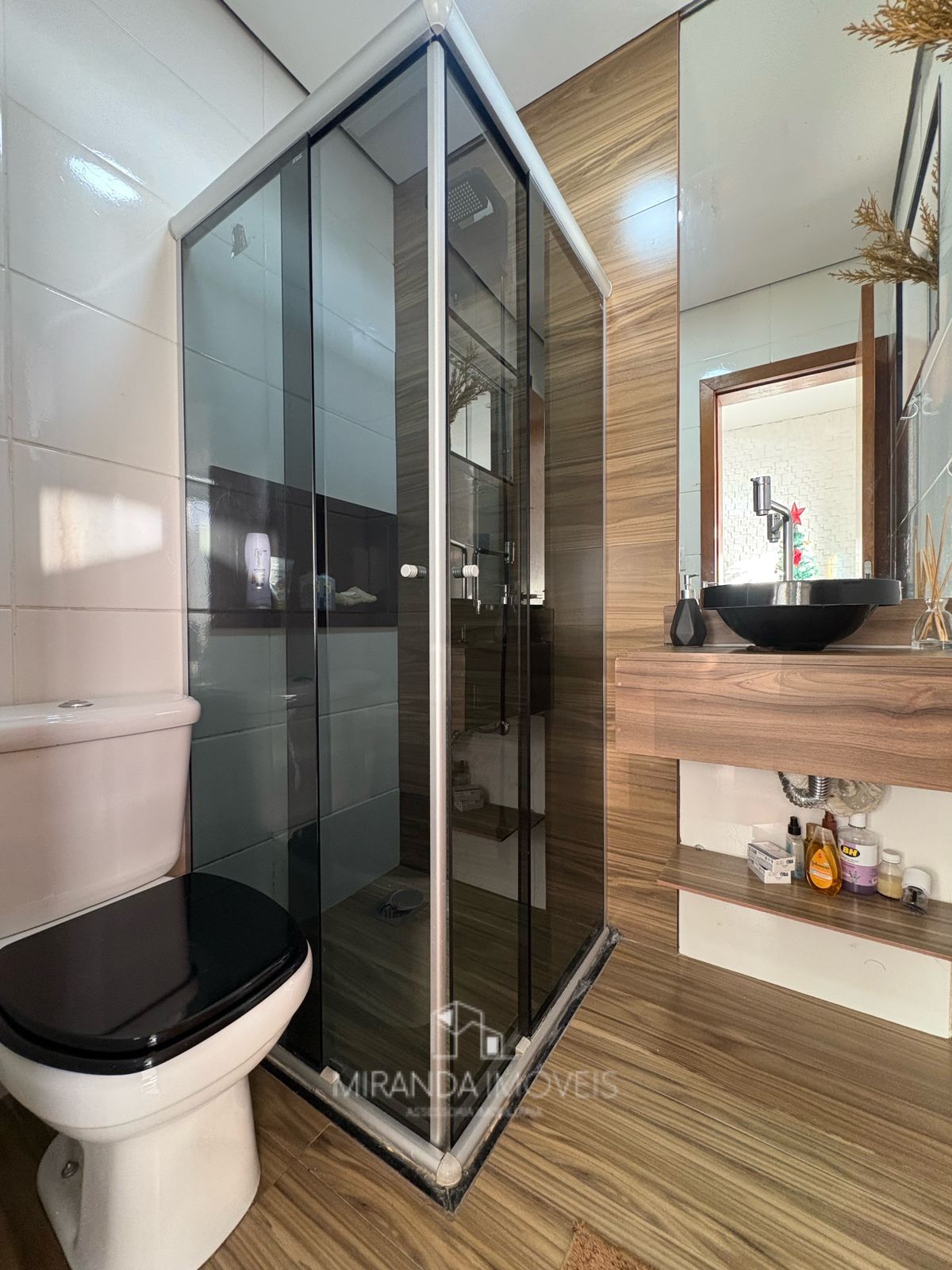 Primeiro pavimento: 02 quartos, banho social, sala de jantar e cozinha fechada.